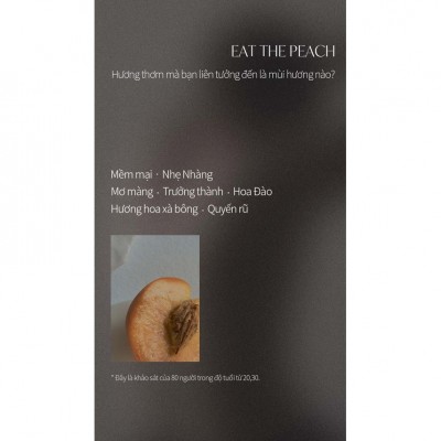 ????Eat The Peach nền hương đào, hương táo và gỗ đàn hương, ngọt nhẹ, thanh mát và nữ tính.