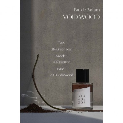 ????Void Wood kết hợp các hương lá thơm Green leaf, hương hoa nhài và gỗ tuyết tùng, mang lại cảm giác mạnh mẽ và bí ẩn.
