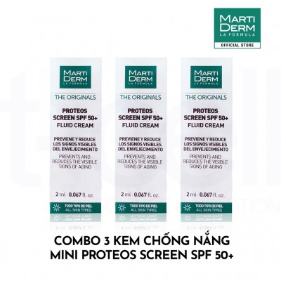 | Tên sản phẩm | Combo 3 Mini Kem Chống Nắng Phổ Rộng Toàn Diện Ngừa Lão Hóa Martiderm The Originals Proteos Screen SPF50+ (3 tuyp x 2ml) |