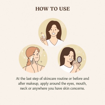 Ở bước cuối cùng của quy trình chăm sóc da hoặc trước và sau khi trang điểm, thoa quanh mắt, miệng, cổ hoặc bất cứ nơi nào bạn có vấn đề về da.