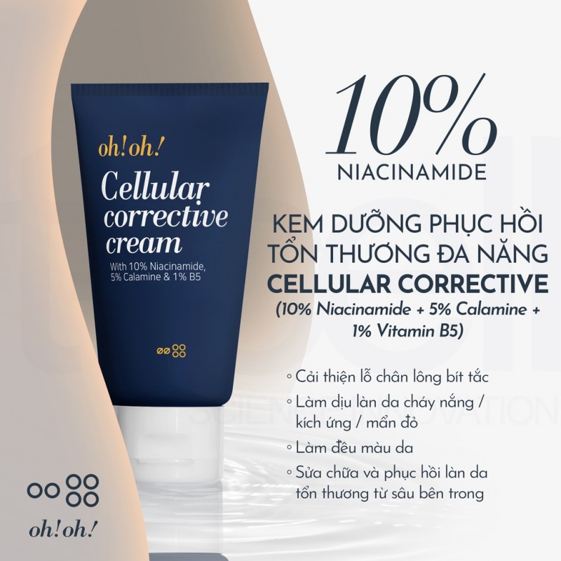 oh!oh! Cellular Corrective Cream là dòng kem dưỡng đa năng sở hữu những thành phần hoạt chất phục hồi da ưu việt giúp làn da được dưỡng ẩm chuyên sâu và bảo vệ toàn diện khỏi các tác nhân gây hại từ môi trường, từ đó mang lại một làn da săn chắc, mịn màng và rạng rỡ.