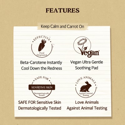 Làm dịu da với chiết xuất cà rốt và dầu hạt cà rốt giàu Beta-Caroten. Các thành phần có nguồn gốc từ cà rốt tự nhiên của carotene được chứng nhận bởi Bộ Nông nghiệp Hàn Quốc thông qua phương pháp chiết xuất hơi nước tự nhiên không chứa dung môi hóa học. Caroten có hiệu quả như chất chống oxy hóa, cung cấp độ ẩm dồi dào. Sản phẩm làm dịu làn da quá nóng và nhạy cảm một cách hiệu quả.