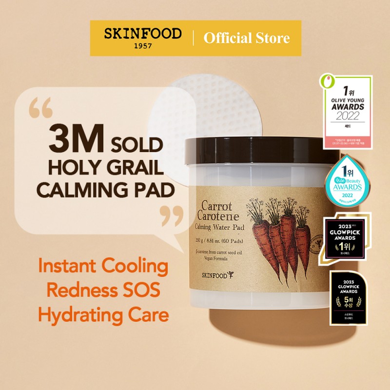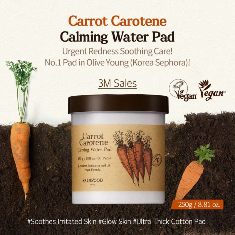 | Tên sản phẩm | Set 60 miếng đệm cấp nước và làm dịu da SKINFOOD thành phần cà rốt thuần chay tự nhiên xóa mẩn đỏ làm mát da nóng 250g |