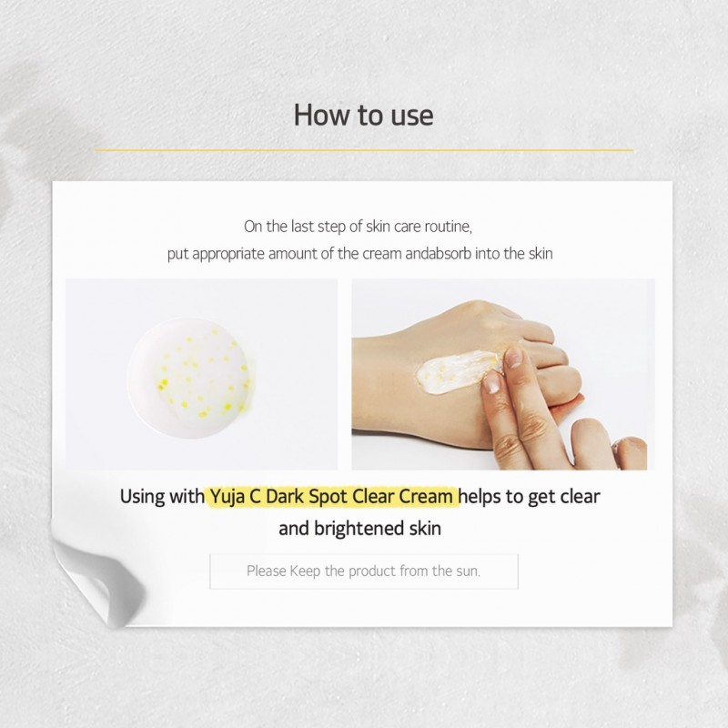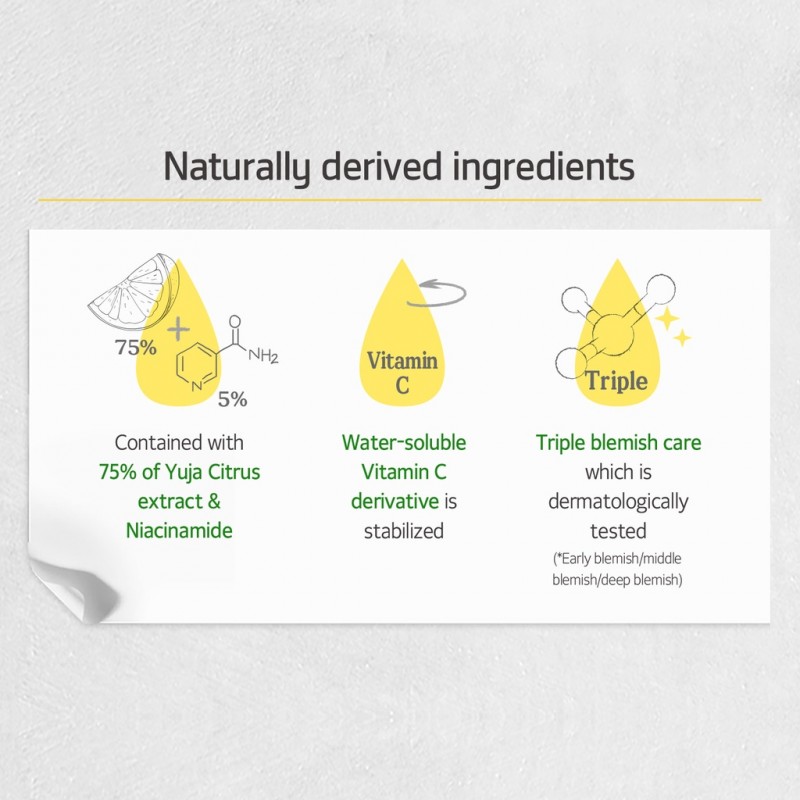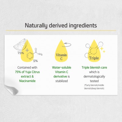 Được đăng ký là sản phẩm thuần chay tại Hàn Quốc, tinh chất dạng nước này là tinh chất tinh chất chỉ chứa 7 thành phần thiết yếu với chiết xuất yuja, 4 thành phần chức năng làm trắng và 2 loại thành phần để ổn định công thức.