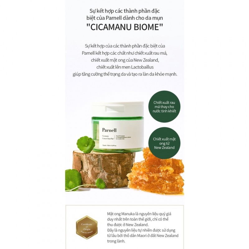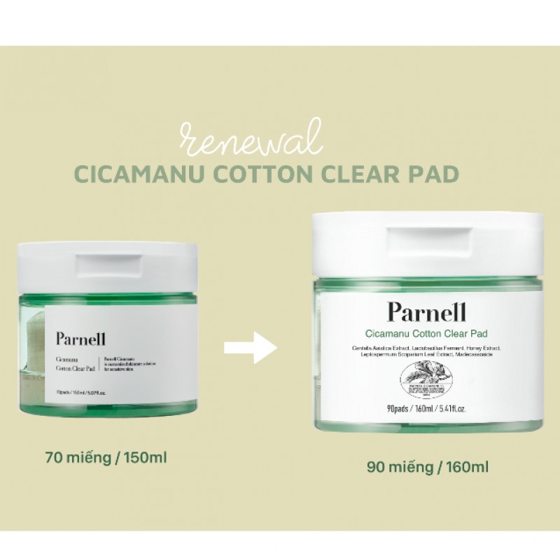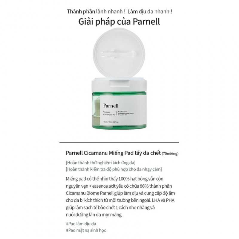 | Tên sản phẩm | PARNELL Miếng pad tẩy da chết Cicamanu 90 miếng |