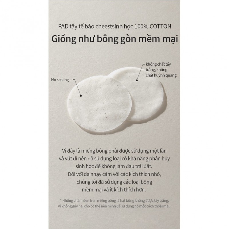 Miếng pad có thể nhìn thấy 100% hạt bông vẫn còn nguyên vẹn + essence axit yếu