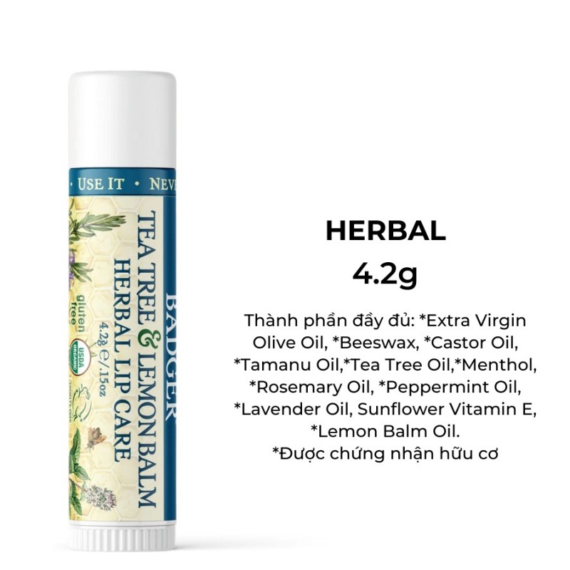 | Tên sản phẩm | Son dưỡng môi hữu cơ BADGER Lip Balm USDA Organic - 4.2g |